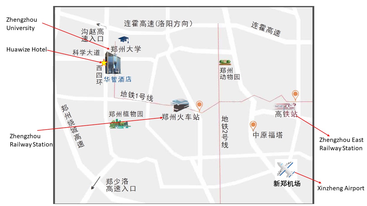 地铁:乘坐2号线于紫荆山站换乘1号线地铁,乘坐去往河南工业大学方向的地铁, 至郑州大学站B口向西100米即可到达酒店。