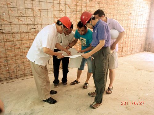 工程小组每周一召开协调例会,与施工单位商榷施工技术问题,并到施工现场解决工程中的问题。工程小组每个人都能认真履行自己的监察义务,做到对施工工程随时检查,严格监督。即使在全所放假期间,也依然坚持查看工程进展情况,及时与施工方沟通解决工程技术、工程质量和进度等问题,做好施工管理和协调工作,确保工程顺利进行。