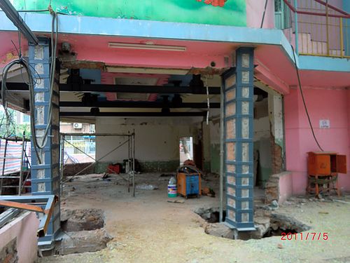6月18日,幼儿园抗震加固工程正式开工。通过钢筋网加喷射混凝土加固墙体、增加构造柱和护壁柱等措施,使教学楼达到国家标准抗震设防度,让幼儿园成为最安全最牢固的服务场所。后勤总公司领导将本工程作为一项重要任务来抓,周密安排、跟踪服务,多次到现场对质量安全进行检查。王福来总经理一再强调:幼儿园的抗震加固责任重大,工程项目要严把技术关、质量关和安全关。施工方应严格控制施工进度,按期保质地完成工程任务,确保幼儿园如期开学。