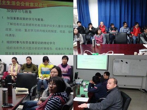 首先,支部书记史戎坚报告了民主生活会会前准备意见,将与党支部成员、积极分子、工青妇负责人以及职工、研究生进行了沟通的情况做了总结,主要集中在加强学习与教育、加强沟通促进思想统一、通过多样化的活动促进团结与合作三个方面。党支部成员就此展开了充分的讨论,总结了目前存在的不足和面临的问题,进一步梳理下一步的工作思路和工作重点,形成了基本共识。