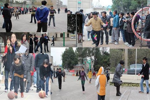 本次比赛项目分个人、团体两个大项十个小项。个人项目有男、女慢骑车、双人踢毽、呼拉圈、飞镖比赛等;团体项目有拔河比赛、定点投篮、赶猪接力比赛等。本次活动职工、学生参与面广,运动项目新颖有趣,刺激好玩,全中心职工不管年纪大小都积极参与其中,乐在其中。最后一个压轴项目集体拔河将运功会的气氛推向了高潮。整个运动会气氛热烈、秩序井然,运动会自始至终体现出一种集体的凝聚力与向心力。