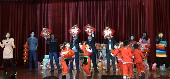 联欢会在热闹愉快的节日气氛中开始,别出心裁的节目编排,获得了观众和嘉宾的一致好评。现场大屏幕上,滚动播放了中心人员在大亚湾中微子实验、散裂中子源靶站谱仪建设、超导实验中的工作和生活情况,以及中心一年来各项活动的精彩瞬间,引起了现场观众的共鸣和美好回忆;一支节奏欢快的开场舞拉开了联欢表演的序幕,接下来的小品表演幽默生动,紧贴时代热点,外景拍摄的“青年style”更是成为整台节目的最大亮点。最后的歌曲串烧节目,中青两代的激情献唱、由小朋友伴舞的“欢乐中国年”将全场气氛带入高潮。节目结束之后,中心为大家安排了惊喜连连的抽奖环节,并为工会积极分子颁发了奖品,整个联欢会过程中,大家欢声笑语,其乐融融。