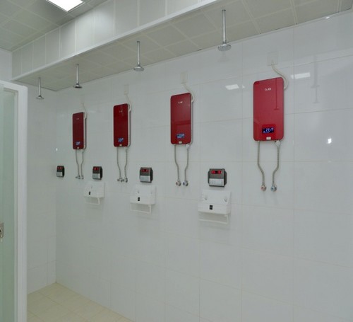 九号楼装修及浴室改建历时一个半月,装修部分包括对九号楼楼道及楼梯铺设地板块、楼道墙面及房顶粉涮及房间门粉刷等,共32小项;浴室改建工程内容:将原来每层厕所一个淋浴喷头(共计8个喷头)改为男、女两个独立浴室,每个浴室安装了7个喷头。