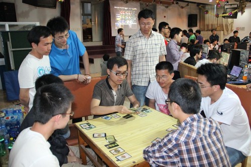 电子竞技大赛共有7项电子游戏,经过6天的线下小组赛拼杀,15日晚,各项游戏的佼佼者相会“决赛之夜”,每年备受关注的DOTA和实况足球决赛唱响了决赛的主旋律,而今年刚引进的切水果、找你妹等小游戏更让现场人气暴增,小小的工会俱乐部已经容不下高能所青年人的青年活力,今年的电子竞技大赛注定是无眠夜,不管是参与者还是观众都感受到现场不一样的游戏氛围,活动最终在大家的欢声笑语中顺利结束。