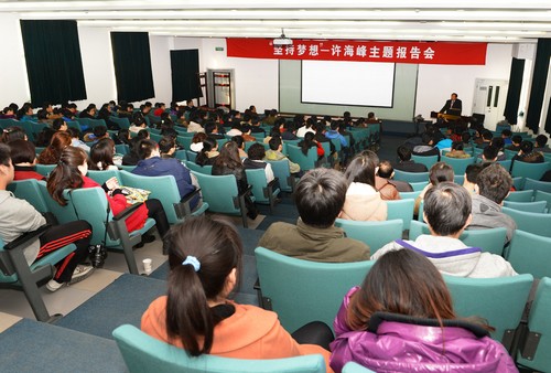 许海峰还通过现场答疑的方式,积极与在场职工、学生进行互动,针对大家的问题给出了精辟的见解。他的真诚睿智和幽默诙谐给在场的职工、学生留下了深刻的印象。