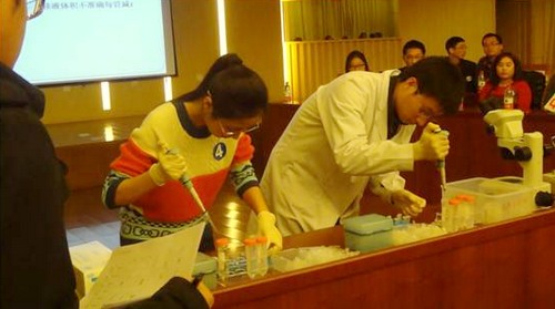 整个比赛共分为知识竞赛、你比我猜、精确移液、质粒抽提以及裸眼辨雌雄五个环节。多学科中心的袁卿、马丹丹、杨尚元、金俊江、胡海岱代表高能所参加了本次比赛。