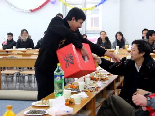 联欢会开始,姜晓明主任致新年贺辞,他对全体师生2012年取得的成绩予以肯定,并借联欢会送上新年祝福。