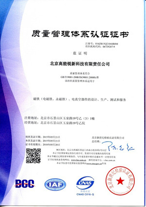 5月16至17日,北京新世纪质量体系认证中心有限公司审核组对北京高能锐新科技有限责任公司质量管理体系运行情况进行了审核。高能锐新公司于5月21日通过了第一次外部审核,顺利取得“质量管理体系认证证书”。