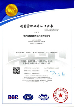 公司认证范围内的产品主要是磁铁、电真空器件。此次审核是公司2013年成立以来,首次完成质量体系审核并取得体系认证证书。为适应公司进一步开拓国际市场的需求,此次认证加发了ANAB(美国国家标准协会-美国质量学会认证机构认可委员会)认可标识。
