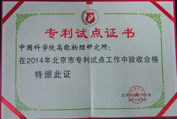 6月10日,高能所获颁北京市知识产权局“专利试点证书”,成为北京市专利试点单位。