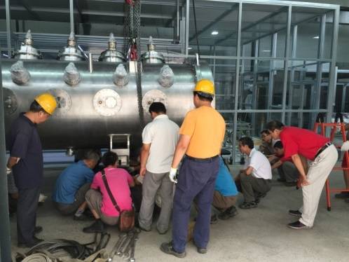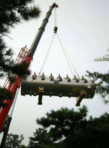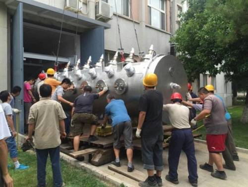 ADS项目注入器I CM1内部由7个周期结构组成(超导腔系统超导磁铁+束测单元),长约近6米,外筒直径约1.4米。由于体积非常庞大,且束线设备位置的精准性和稳定性要求非常高,因此在CM1组装完成后,在现有的狭小空间条件下由2号厅运至1号厅隧道是个很大的难题,涉及到自实验厅空间狭小、路况和狭窄及楼板承重能力等众多因素。为保证设备运输的安全性,通用运行人员与ADS项目人员前期在运输场地多次召开现场讨论会,研究并最终制定运输方案,完成了各种运输所需特型工装设备的加工。高温假期间,北京天气闷热,运输现场吊车等各种运输工具齐上阵,人力等统筹分配,大家背汗湿如泼,最终在以通用运行人员为主的队伍的努力下,充分发挥聪明才智,克服重重障碍,在五天里成功完成了CM1的安全吊运。