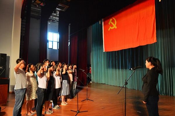 优秀党支部代表宋黎明、离退休党员代表高启荣分别发言,他们表达了对党的热爱和继续为党的事业努力奋斗的决心。党政办王欢同志带领13名新党员在党旗下进行了庄严的入党宣誓。