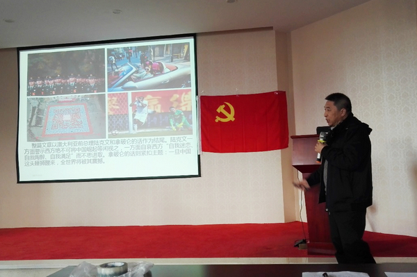 卢方军同志首先讲述了十八大以来中国发生的巨大变化,介绍了召开中国共产党第十九次全国代表大会的时代背景。随后,卢方军同志对十九大的召开情况和十九大报告中13个方面的主要内容进行了详细介绍,结合习近平总书记“全面深化改革,持续释放发展活力;与时俱进,创新发展方式;进一步走向世界,发展更高层次开放型经济;以人民为中心,迈向美好生活;推动构建新型国际关系,推动构建人类命运共同体” 的讲话及其深刻含义,分享了个人的体会,并号召大家牢记共产党人的初心,牢记使命,砥砺前行!