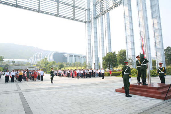 上午8:30,东莞分部全体职工、学生在A1广场集合,举行升国旗仪式。在庄严的国歌声中,五星红旗冉冉升起,全体人员向国旗行注目礼,祝福伟大祖国繁荣昌盛,明天更美好!