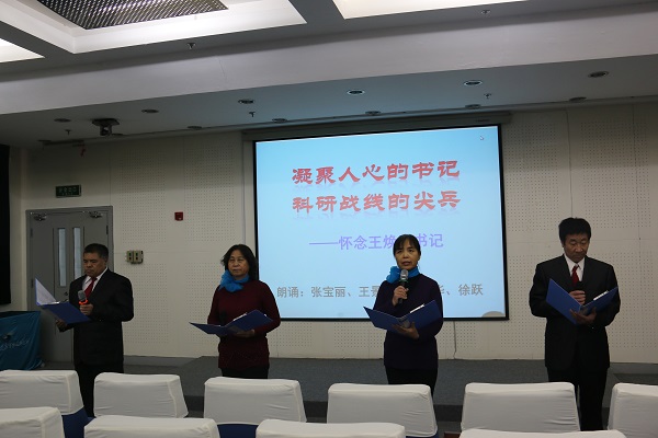 2018年11月4日,高能所原党委书记、研究员王焕玉同志病逝于学术报告现场,为缅怀与铭记老书记,报告会上,张宝丽、王景耀、刘建华、徐跃等四位离退休老同志带来原创诗朗诵《凝聚人心的书记科研战线的尖兵——怀念王焕玉同志》,他们用诗歌再现了王焕玉同志勤勉、奋斗、奉献的一生,使与会人员深受教育与感动。