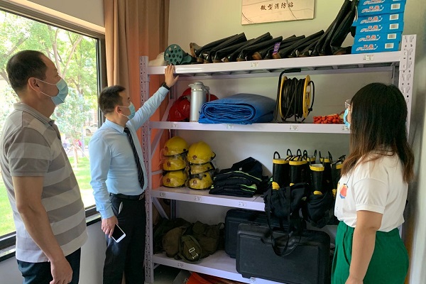 检查园区内防汛物资