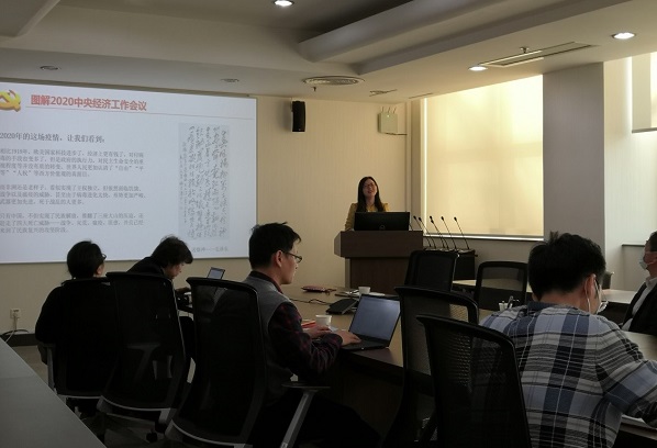 此外,王欢还向与会人员传达了2020年中央经济工作会议的主要内容。其中,报告“在疫情年,我国成为全球唯一实现经济正增长的主要经济体”这一部分内容让与会同志确实感受到了我们国家的制度优势。