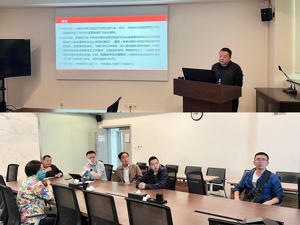 组织委员王辰以“聚焦重点谋发展,凝心聚力抓落实,努力肩负起高水平科技自立自强重任”为主题,带领广大党员学习了侯建国同志在2021年夏季党组扩大会议精神传达会上讲话。支部党员重点学习了“准确把握“国家事”“国家责”的内涵和要求,进一步明确新时期的使命定位和目标任务”。