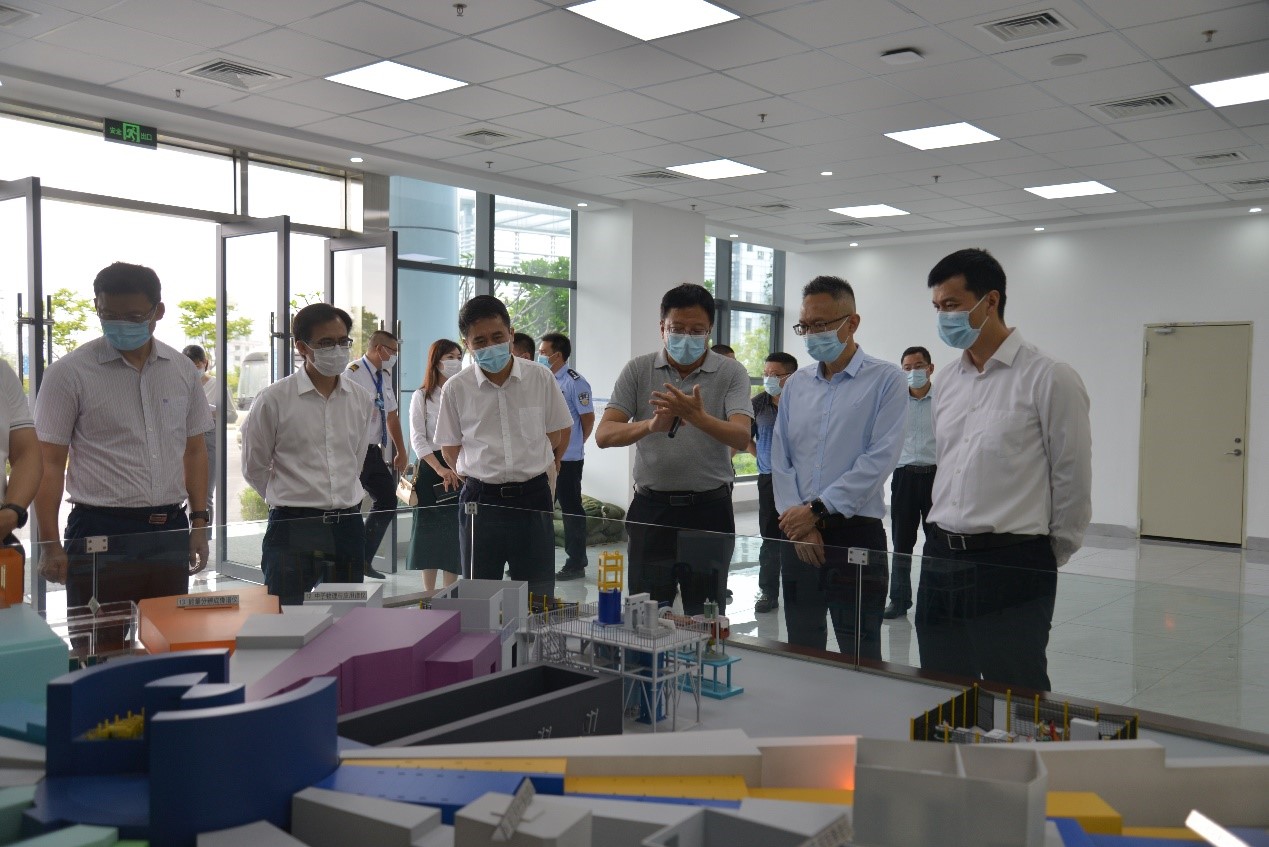 郭怀晋一行观看了CSNS宣传片和沙盘模型,详细了解了装置的运行原理、应用领域、用户群体、经济社会效益和二期工程等方面的情况。调研团还参观了靶站谱仪大厅、硼中子俘获治疗实验装置和南方光源研究测试平台园区等地,并与东莞研究部相关领导共植荔枝古树。