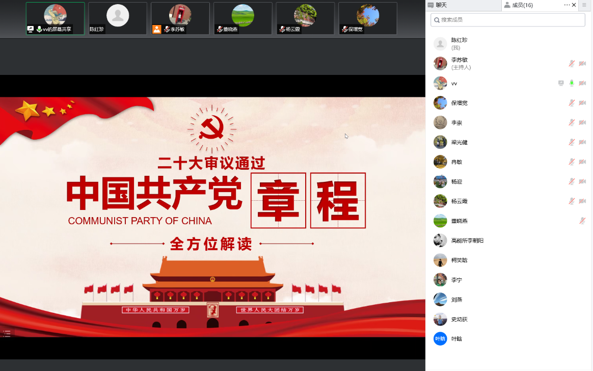 为进一步学习贯彻二十大精神,11月22日,高能所人教党支部开展专题党课学习活动,邀请党委办公室王华玮同志讲解二十大审议通过的中国共产党党章。本次会议采用线上方式开展,由支部书记保增宽主持。