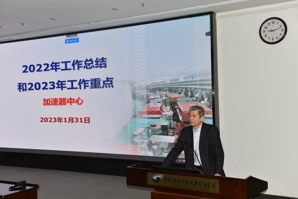 2023年1月31日上午,高能所加速器中心召开了2022年度工作总结会,本次会议由所务委员、中心副主任李煜辉主持,高能所所长、加速器中心主管所长王贻芳出席了大会,线上线下共200余名职工及学生参加了会议。