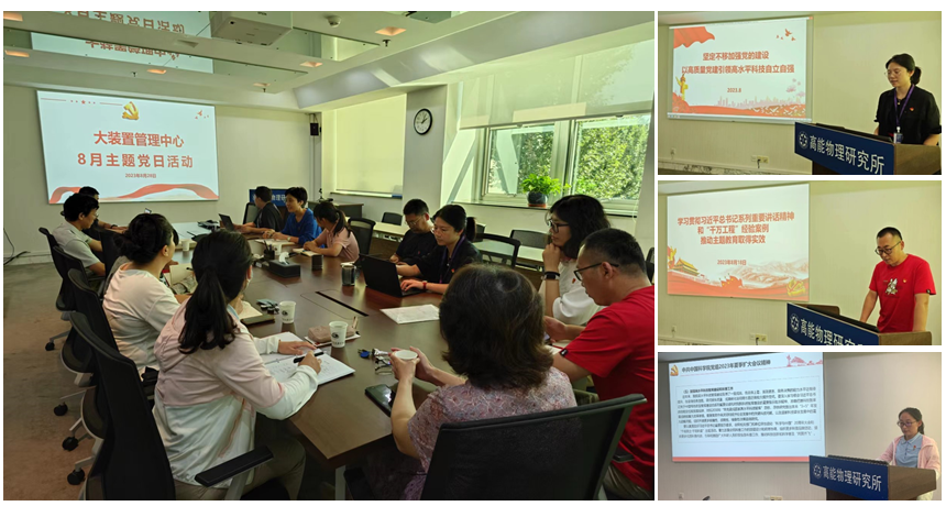 8月28日, 大装置管理中心党支部组织开展8月主题党日活动。会议由党支部书记刘蕾主持,所党委副书记、纪委书记罗小安出席会议。
